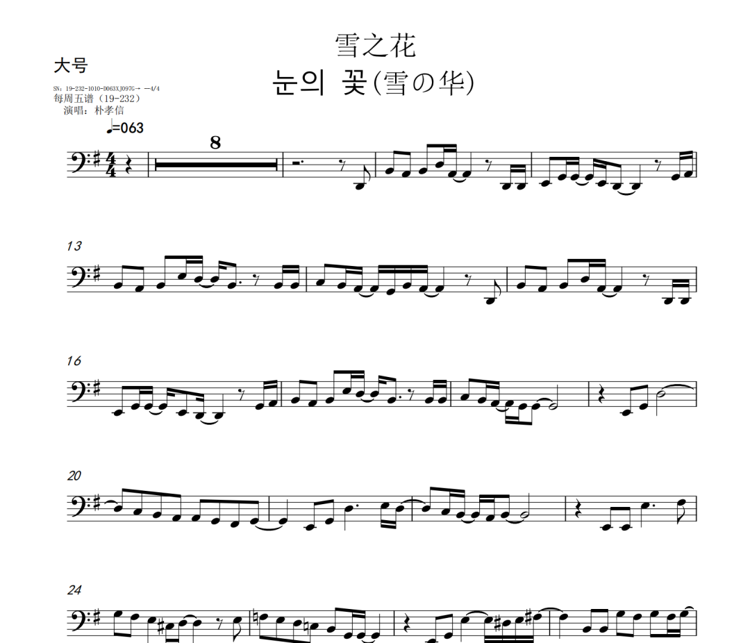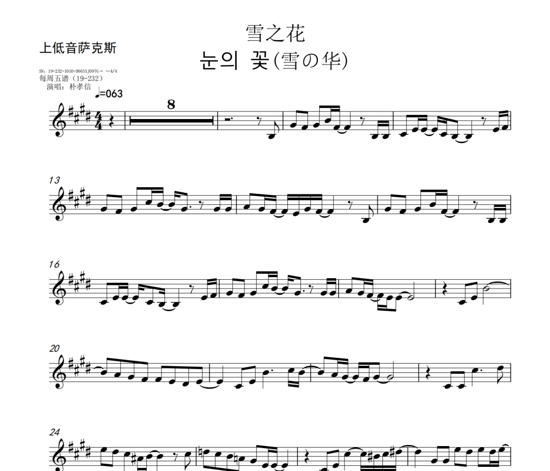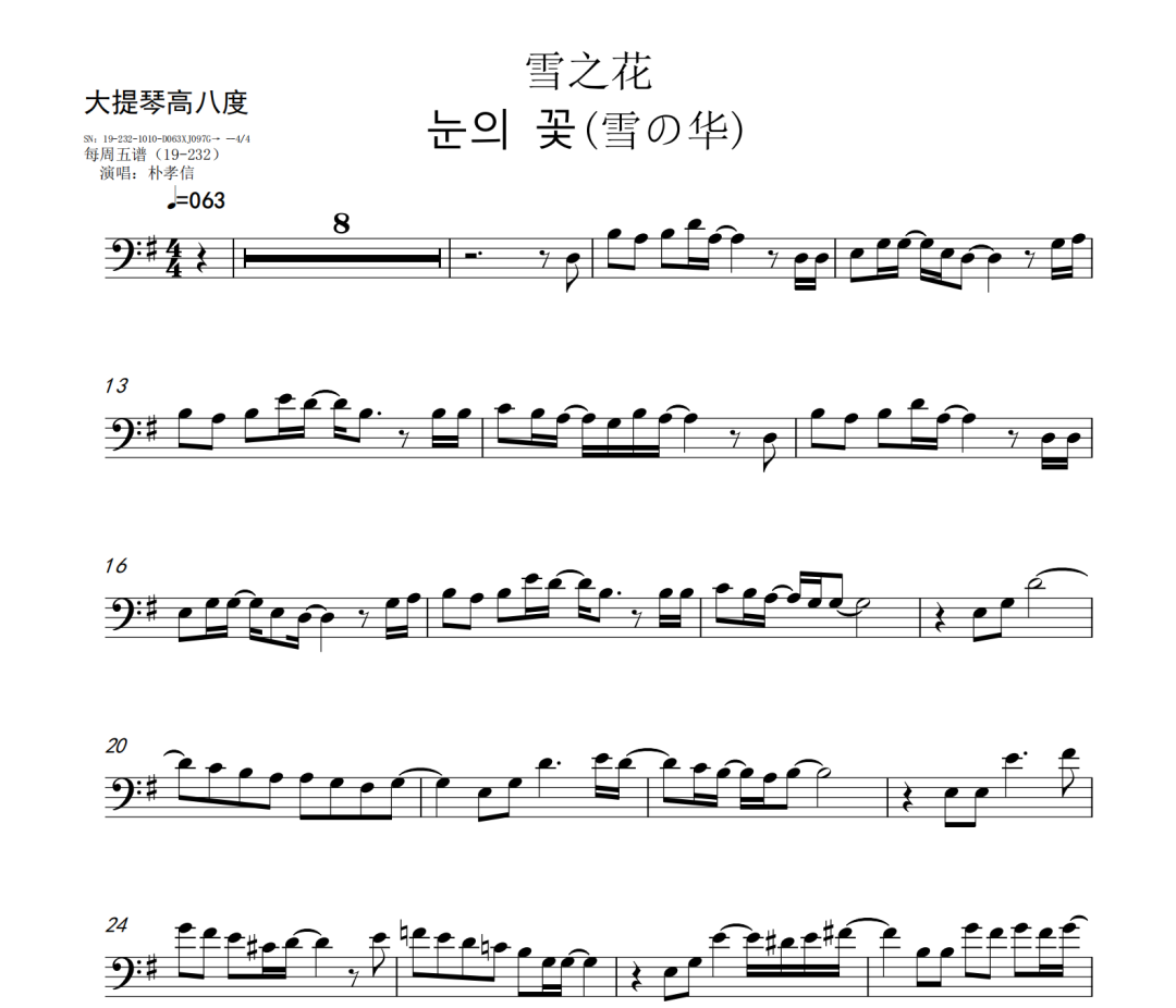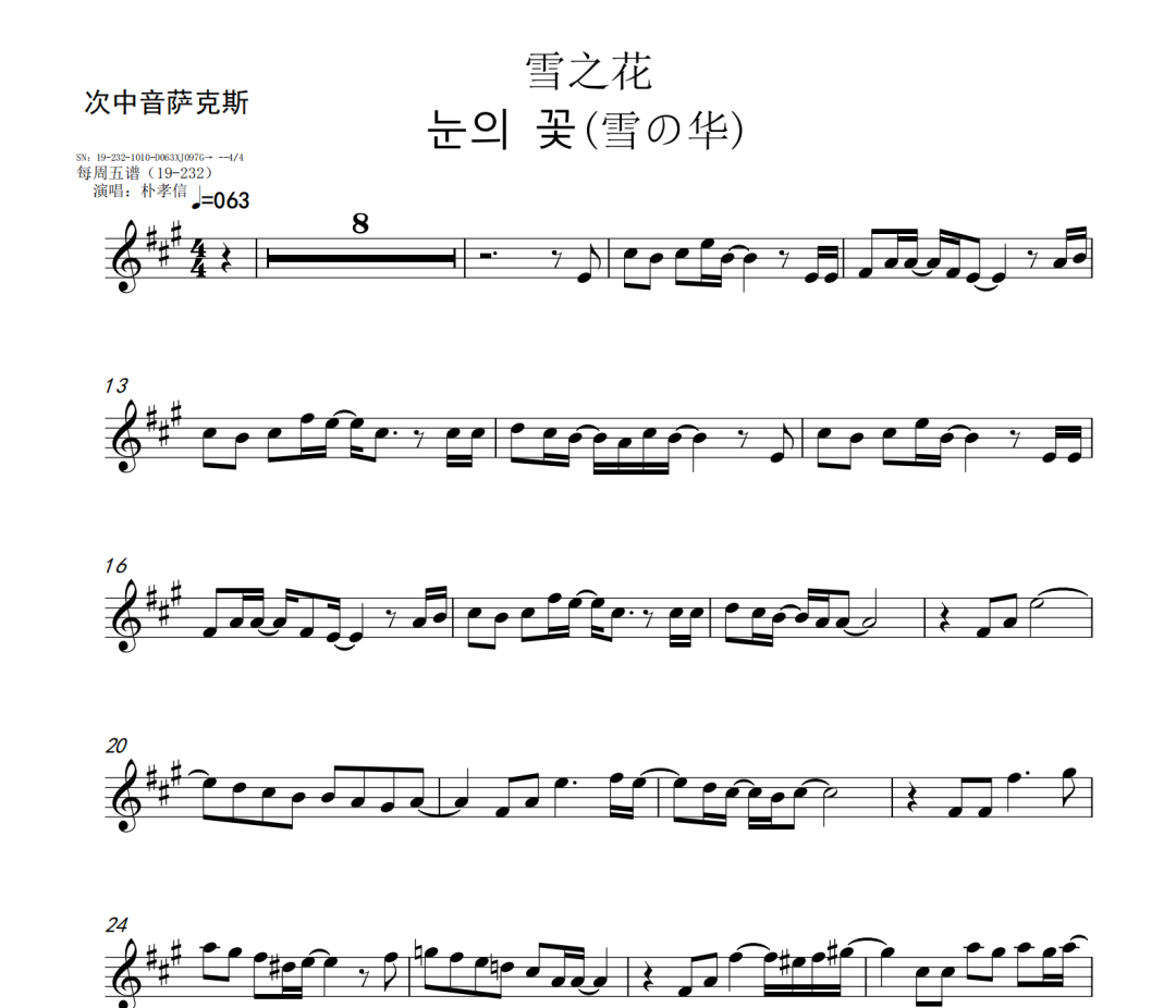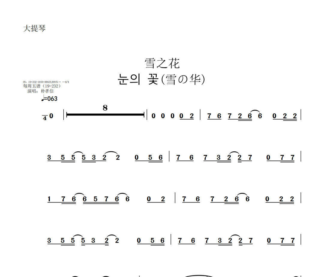 (一种乐器谱子原调+原歌曲伴奏音频)