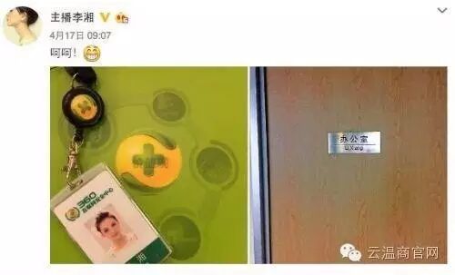 李湘微博晒出工牌及办公室照片(图片引自微博)