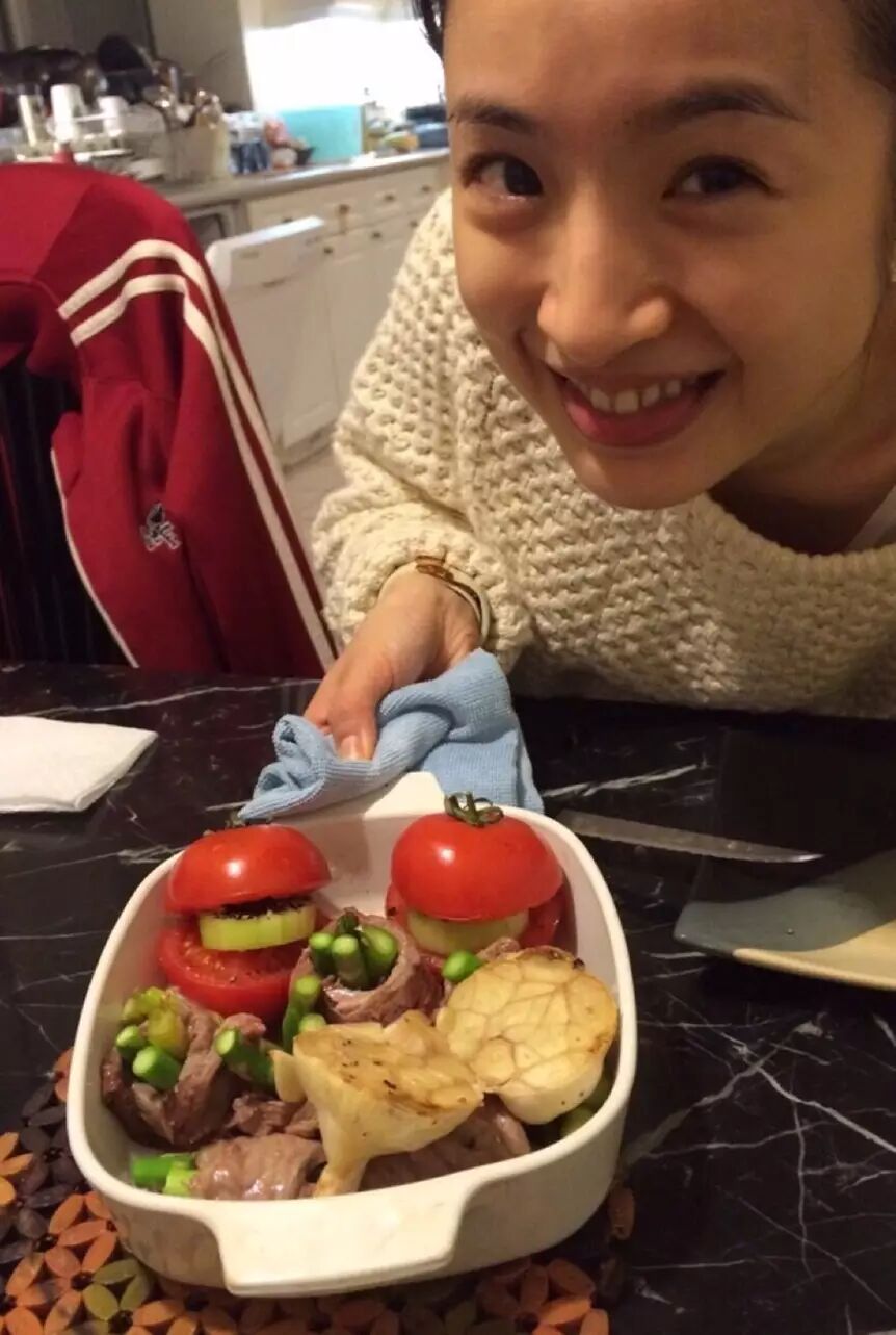 而且海外求学时,林依晨自己做饭也很带感哦~看起来做得不错~