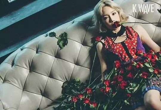 韩流杂志K WAVE最近请到太妍拍摄画报,画报里放着玫瑰花和太妍一起躺在床上,让穿着白色衣装画上淡妆的太妍,散发着清纯美。