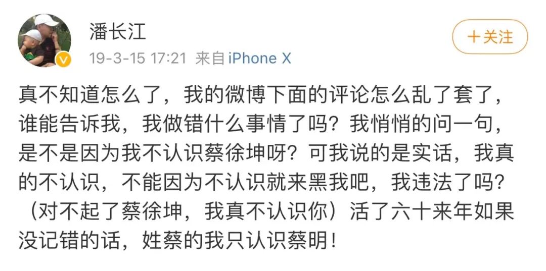 2019年,潘长江在《王牌对王牌》的猜人环节不认识蔡徐坤。