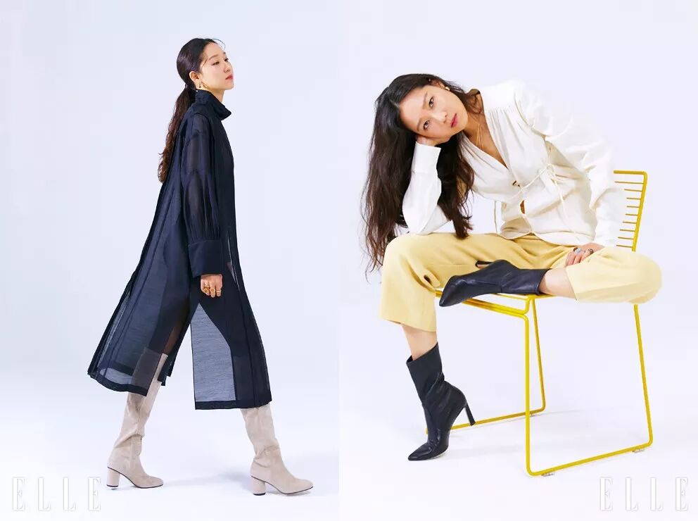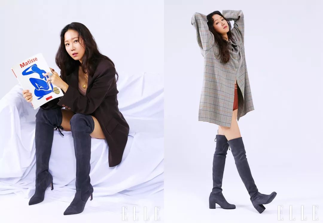 《ELLE》11月号画报中,孔孝真穿着过膝靴搭配廓形外套展现逆天大长腿▼