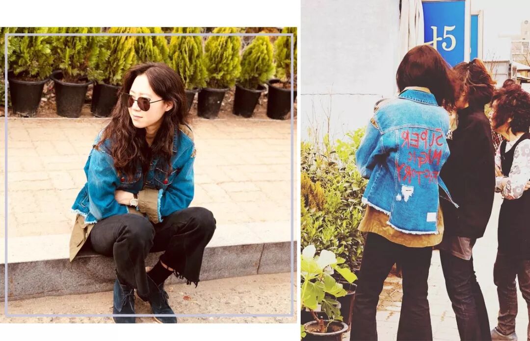 印有字母的牛仔外套非常炫酷,感受下攻气十足的帅孝真▼