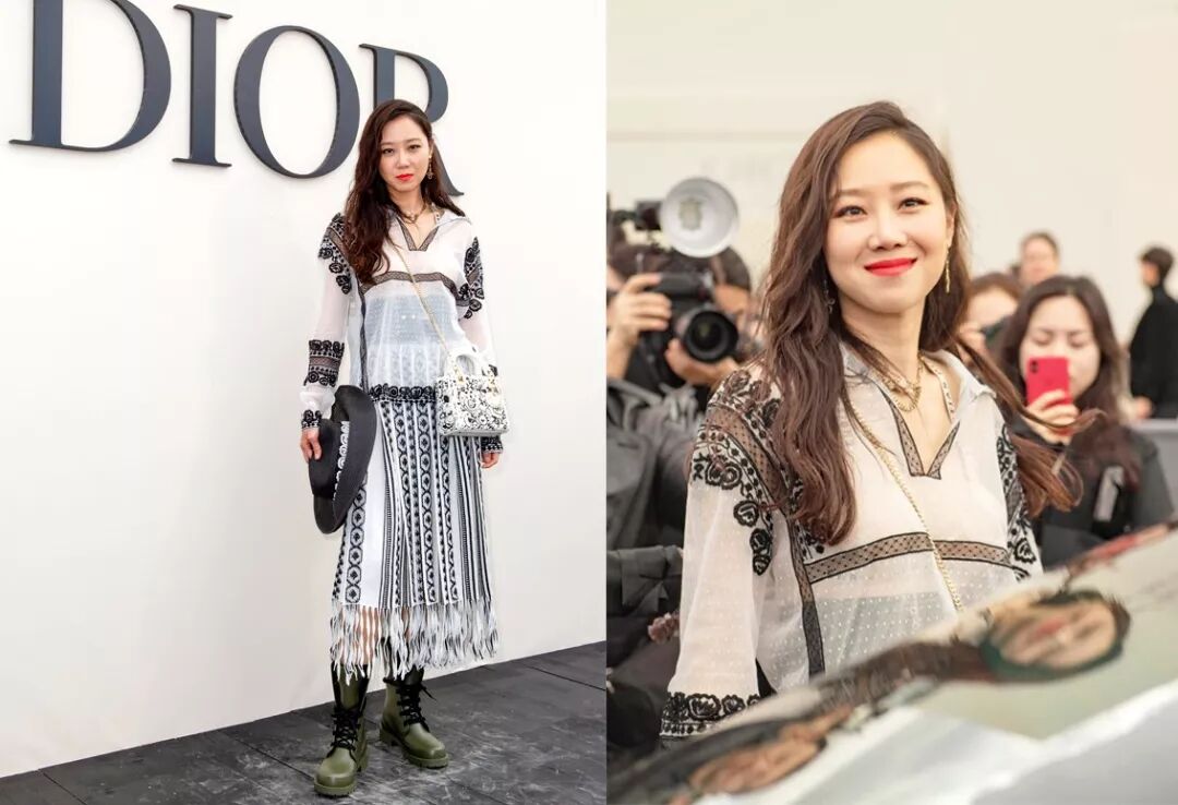 除了拍摄时尚大片,孔孝真还经常出席各大秀场。Dior2019春夏秀场中,温柔的裙装搭配帅气的马丁靴,即刻营造了high fashion▼