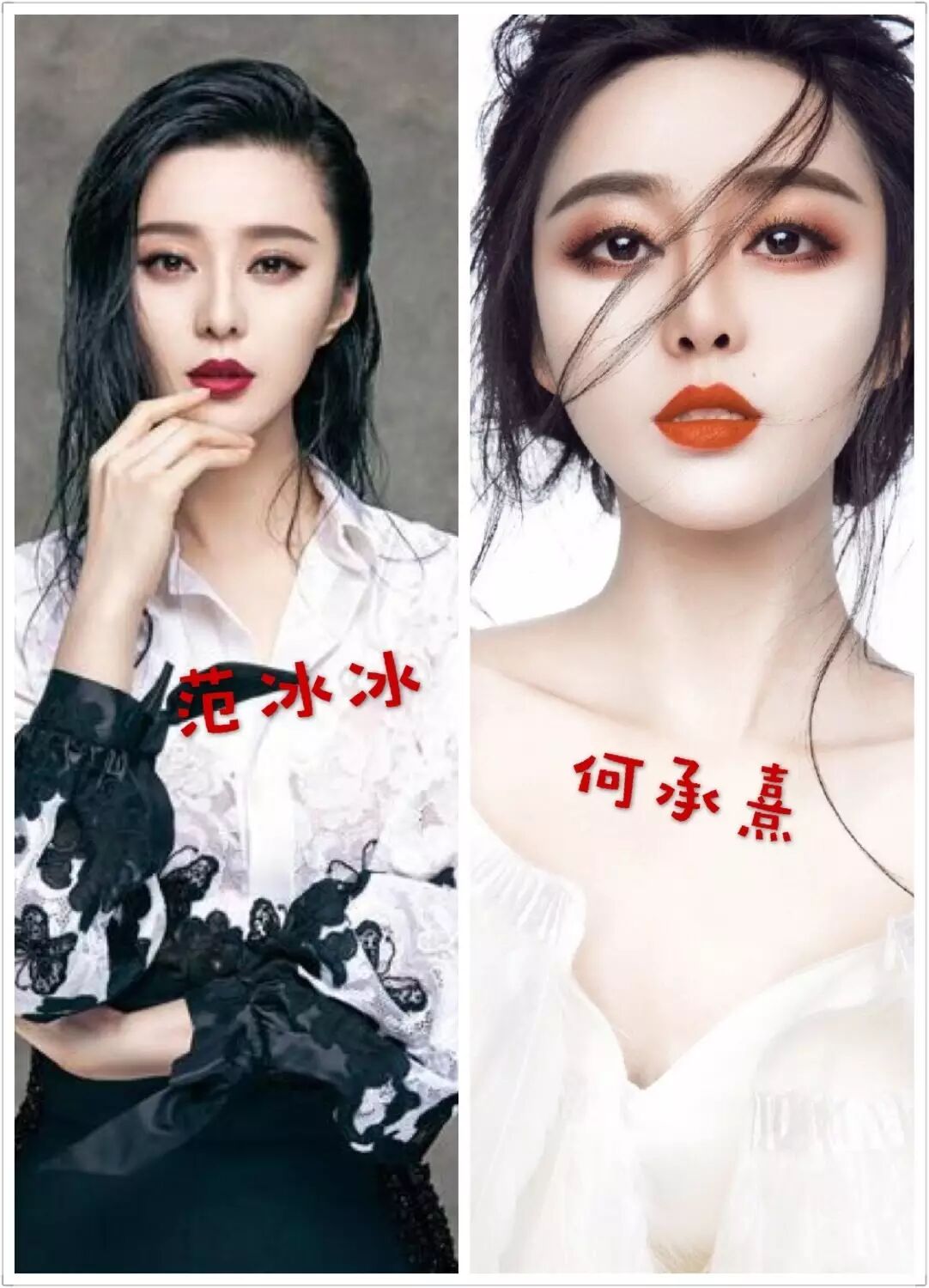 还是妆容、配饰,都与范冰冰如出一辙。