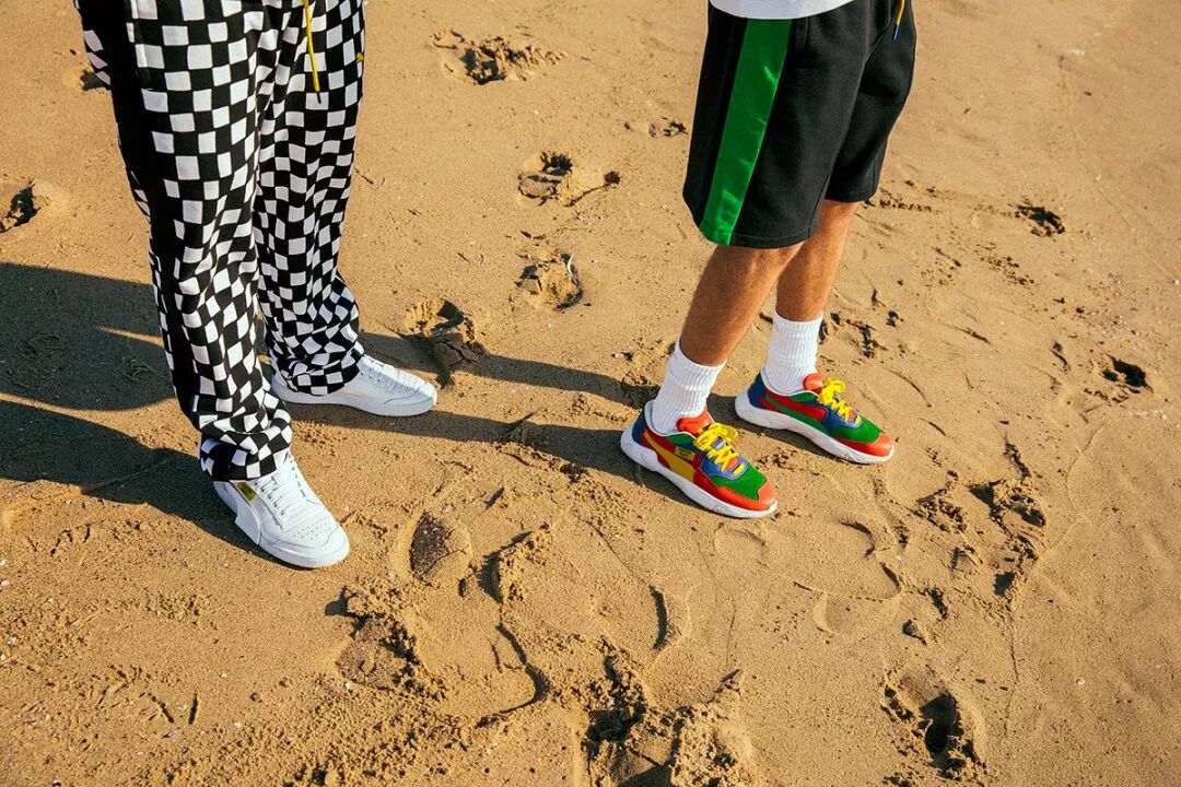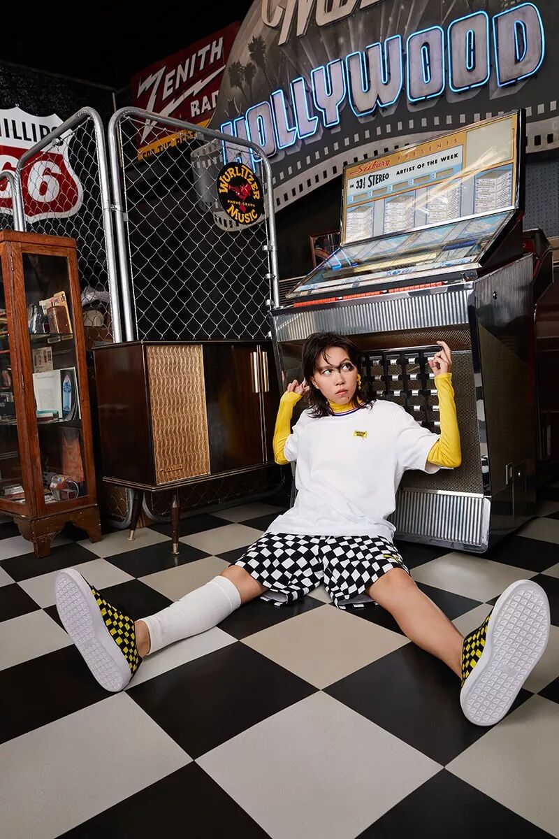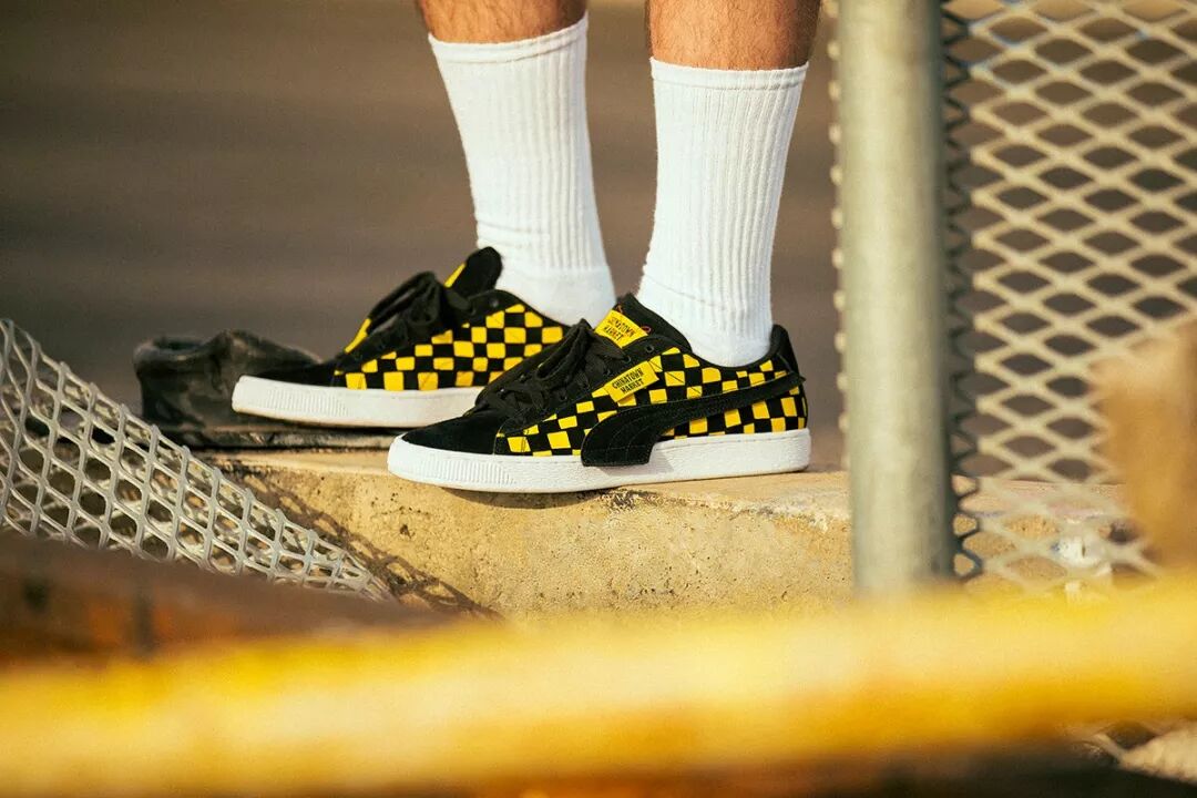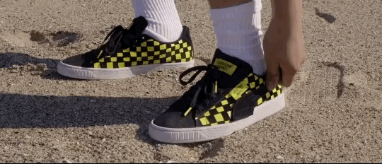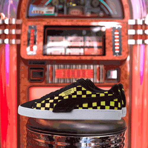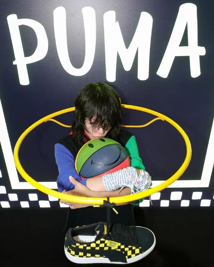 贯穿鞋身的黑黄棋格,与解构过的、PUMA品牌经典式的鞋侧边跑道带来的大面积黑色、以及小面积的黄色块错位拼接,打造出美式复古的潮流感。而可拆卸替换的个性DIY元素,都带着窦靖童式的古灵精怪。