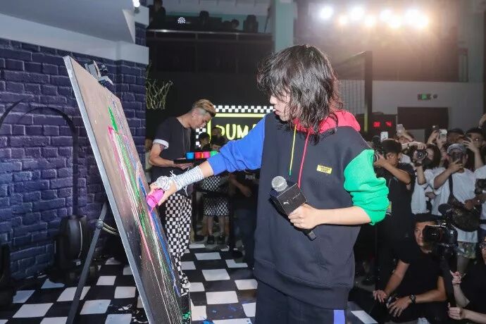 在12日的上海潮人地标上生·新所,空降了一所「 彪马唐人街」,一身红蓝绿撞色帽衫营业造型的窦靖童与上海的弄潮儿们一起玩HIGH了。