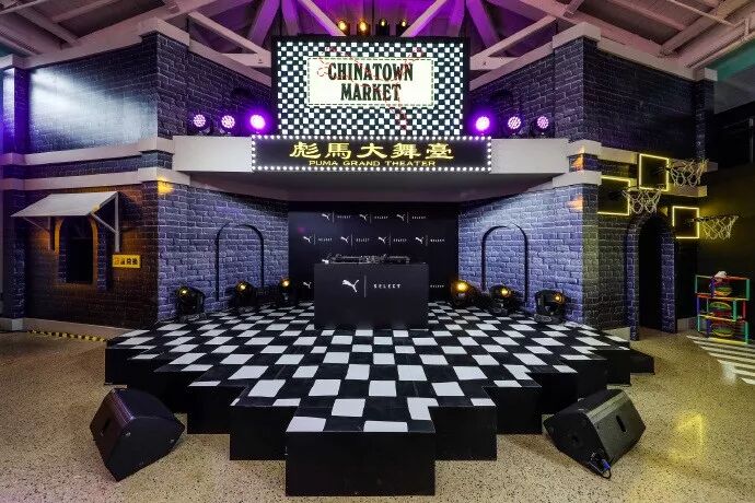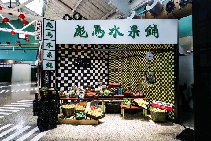 这所满是联名系列棋盘格元素的彪马唐人街,亦同样充满「黑色内核」,打破边界、重塑经典场景:彪马水果摊、中药行、典当行、唱片行、冰室、糖画摊、理发店……儿时的街头场景被融入现代潮流之后一一全新呈现。无规则、更随性、更神秘而惊喜。