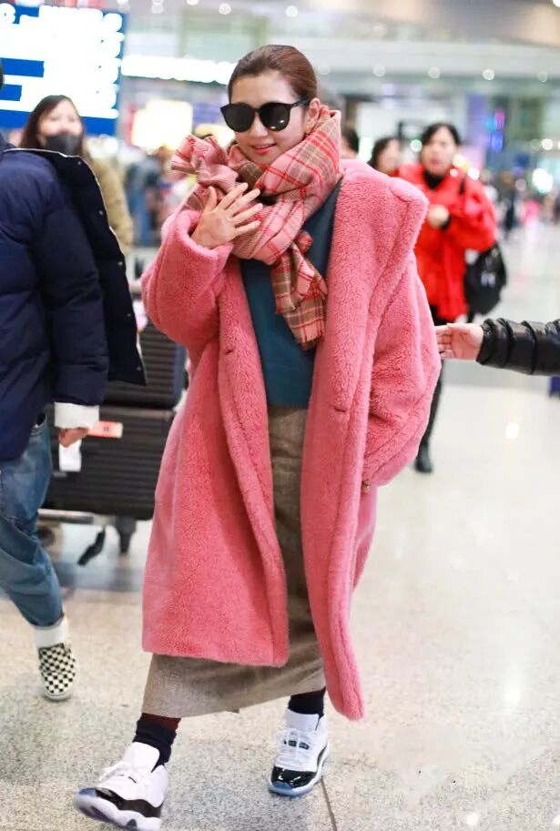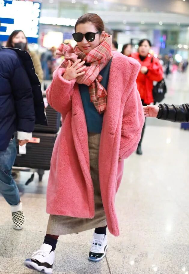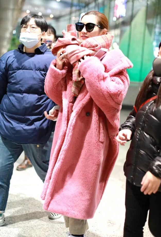 在照片中,我们可以看到任家萱穿的简直是里三层外三层:裹着一条打成疙瘩的粉围巾,还穿了一件厚厚的毛绒大衣,搭上一条棉布裙子不说,仔细一看里面还有一条大秋裤。值得一提的是,任家萱身上这件粉色大衣还无意撞衫了前两天黄圣依的机场造型,在保暖的立场上果然是英雄所见略同。