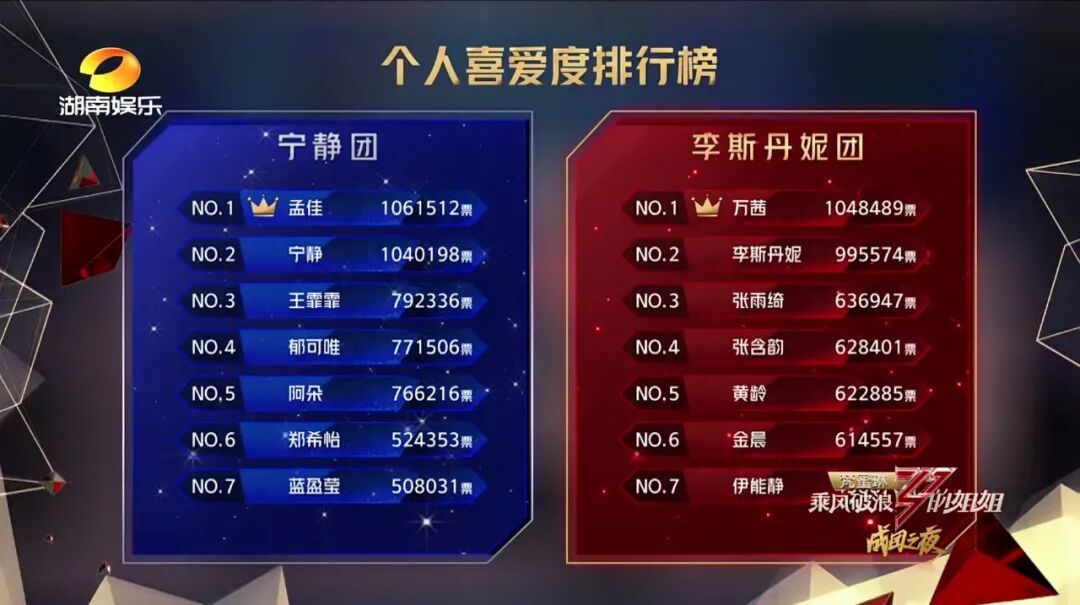 最后的实时个人喜爱度排名,她倒数第一 ↓