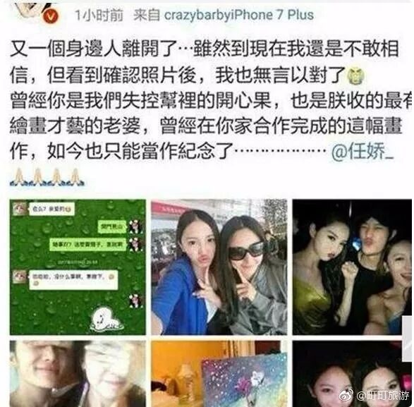 17日,演员蓝燕发微博感叹“又一个身边人离开了”,并配上多张与任娇的合影,证实其死讯。