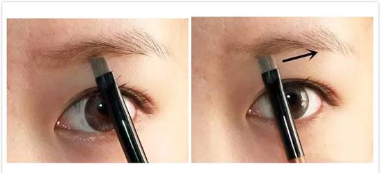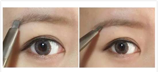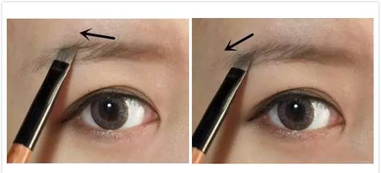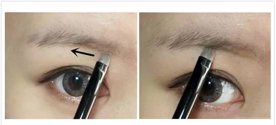 Step1:首先大家要将眉头尽量拉低一些,可以用眉笔或眉粉在眉毛前端的下面位置进行填充,这样就能使得眉毛的后端上扬。当然如果本身眉型有点上扬,则只用把眉毛前端用眉笔稍微修饰一下就行了。