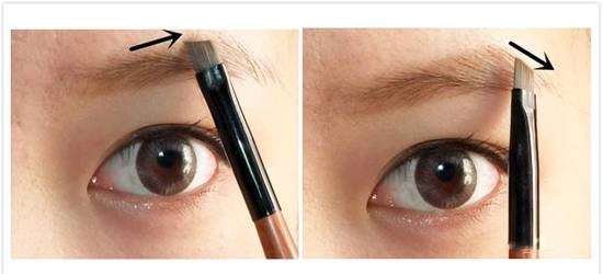 通过下图对比可以看出这种眉型画好后,眉毛整体也是呈上扬的趋势,是一种有棱角的感觉,比较显脸小,很好的起到了修饰脸型的作用,国字脸的女生也可以试一试哦。