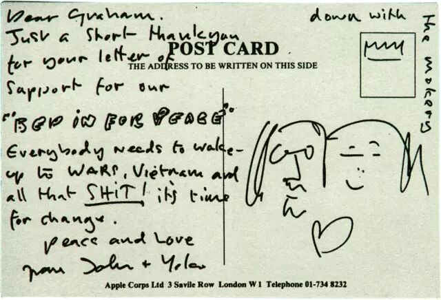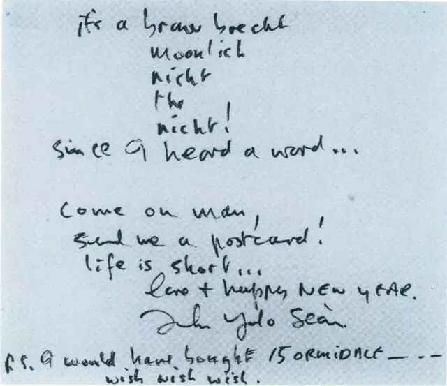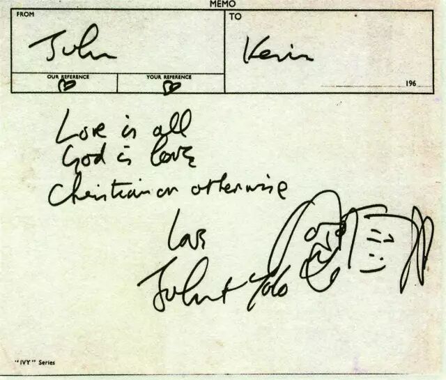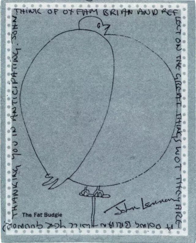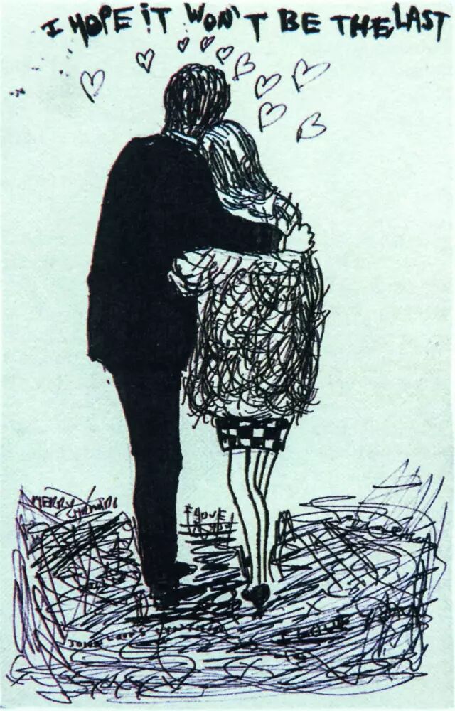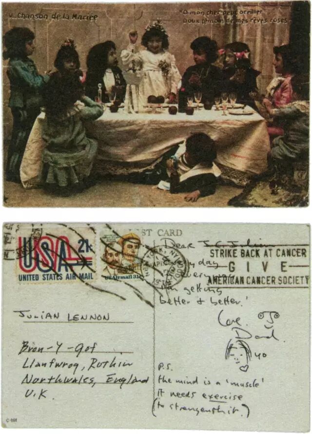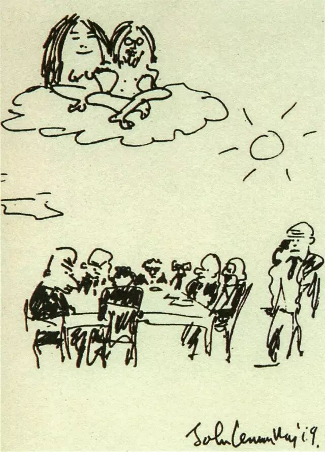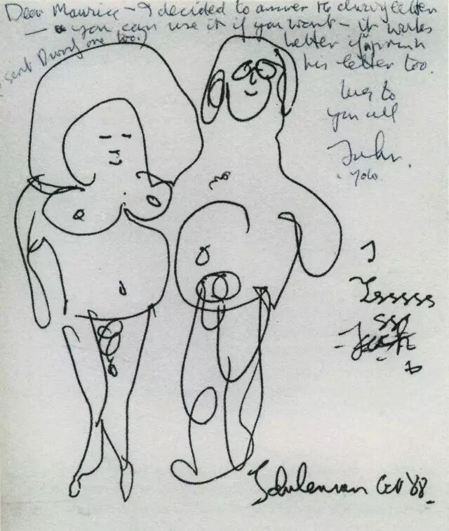 约翰在画画上的天赋除了公开在给儿子的画上,更见诸于他的一笔一画的信里。以涂鸦代替文字进行表达,又或者拿文字配上生动活泼的涂鸦,在给辛西娅的情书里,甚至在用自己和小野洋子的简笔画像代替签名,他就是一枚不折不扣天生浪漫的情种。