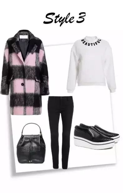 撞色拼接的格纹与舒适的毛呢面料相结合,既保持了风度又锁住了温度,搭配一双厚底鞋和水桶包,休闲中带点帅气,最适合行动派的射手女孩!