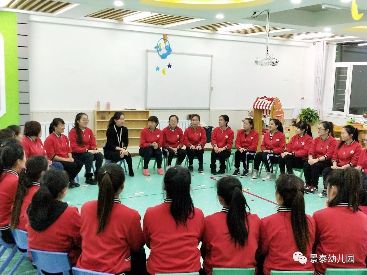 中午,景泰幼儿园全园教师在吴园长的陪同下对于幼儿园的发展进行了研讨。