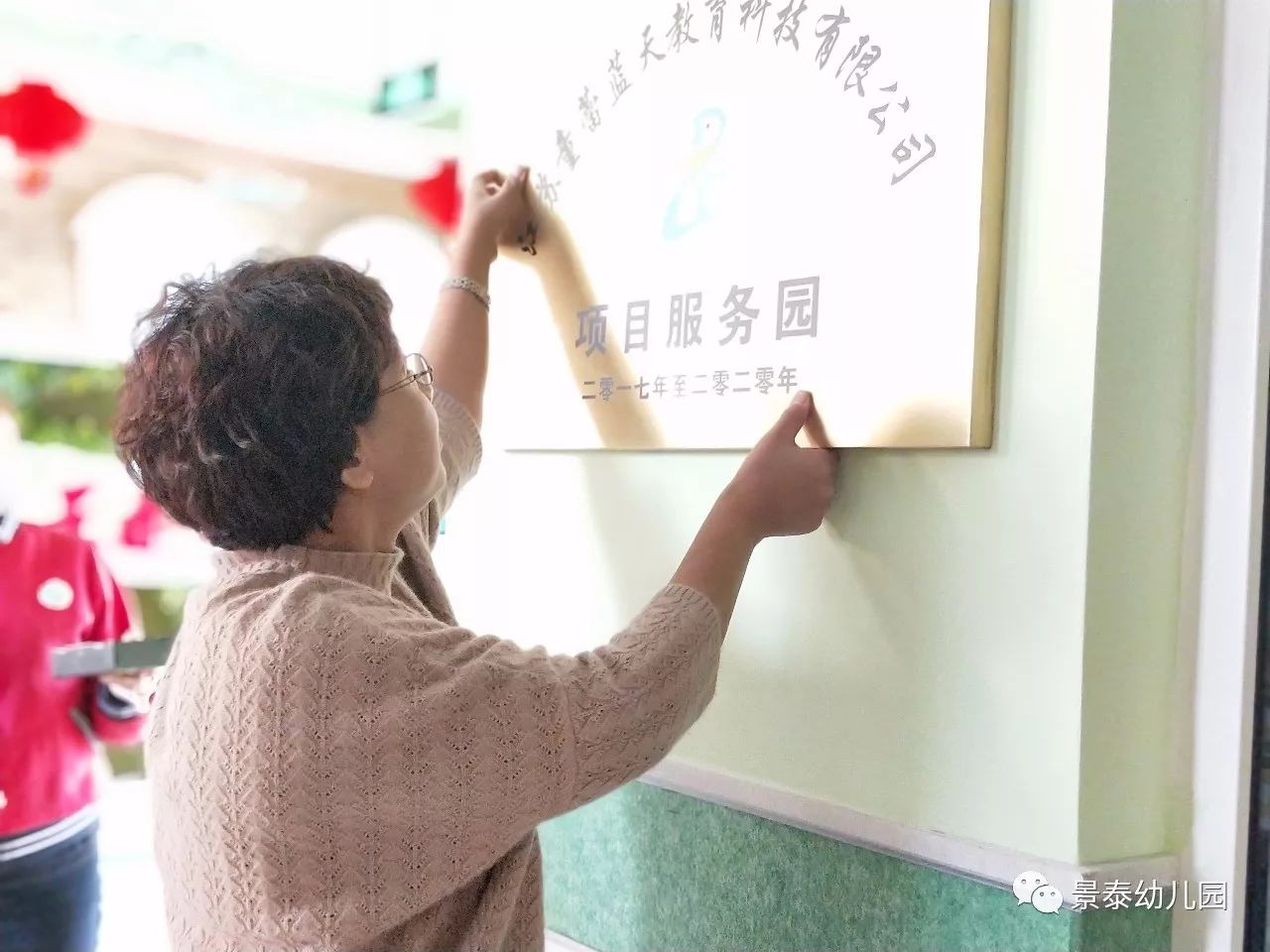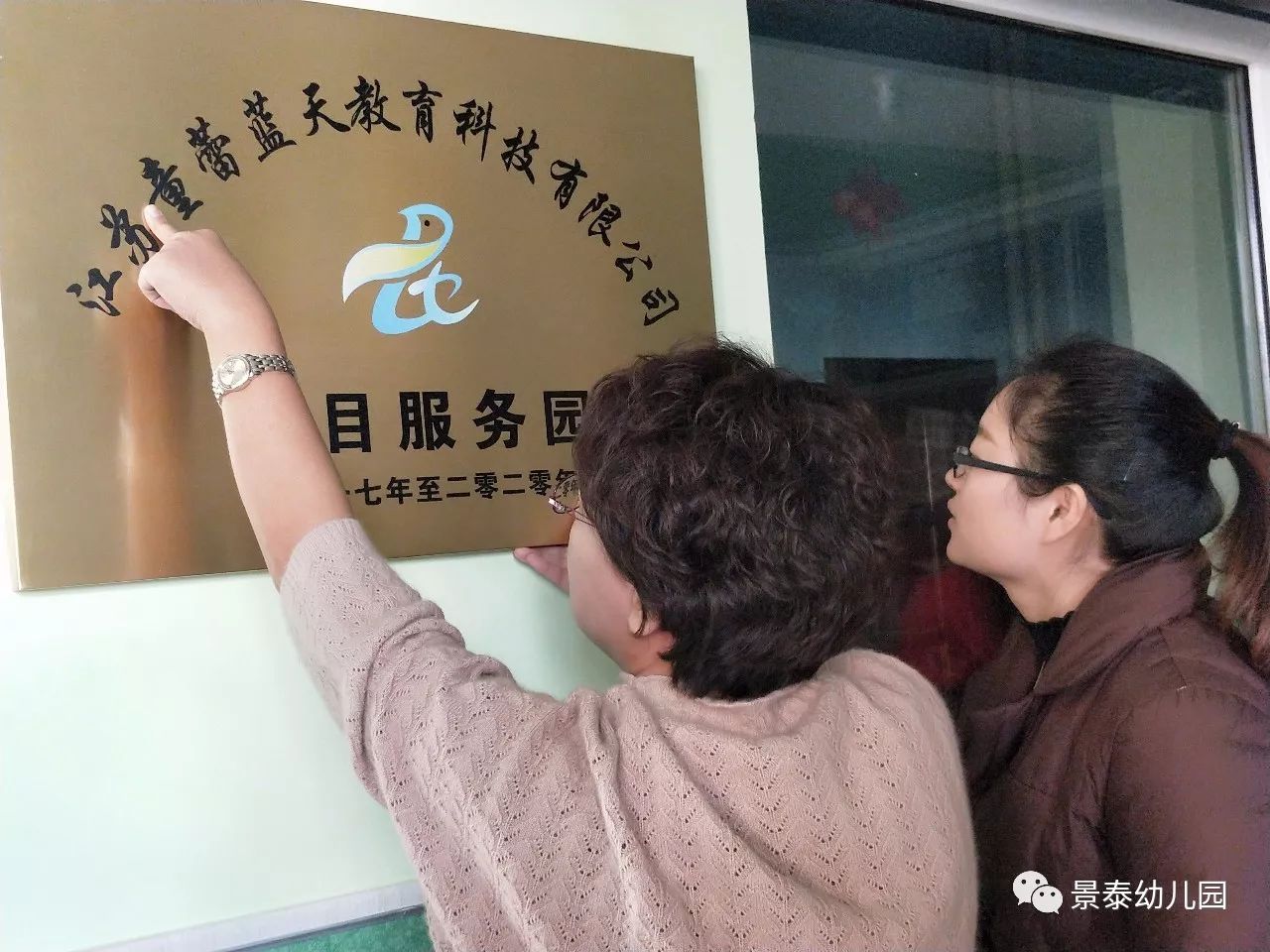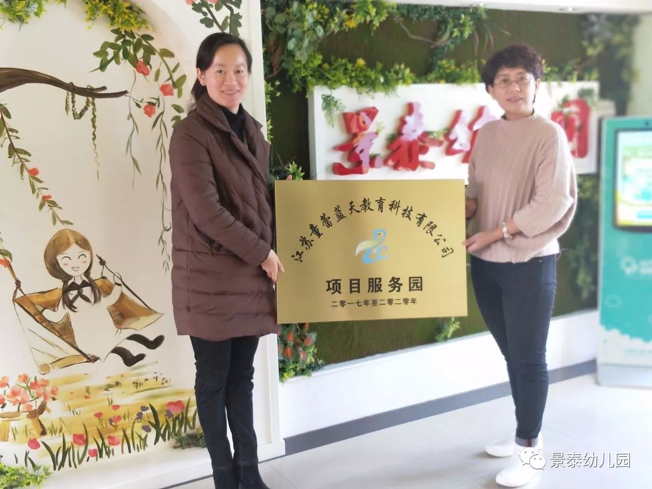 2018年1月10日,童蕾蓝天的几位园长莅临景泰幼儿园关心与指导工作,并与程园长共同完成了授牌仪式。