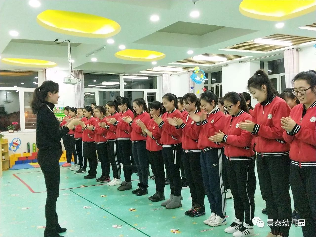 晚上,童蕾蓝天的褚园长为我们做了团队打造,通过这些游戏,让大家知道了我们是一个团队,我们是一家人,不管有什么事情,我们都要有责任,有担当,景泰的姐妹们,我们一起加油!