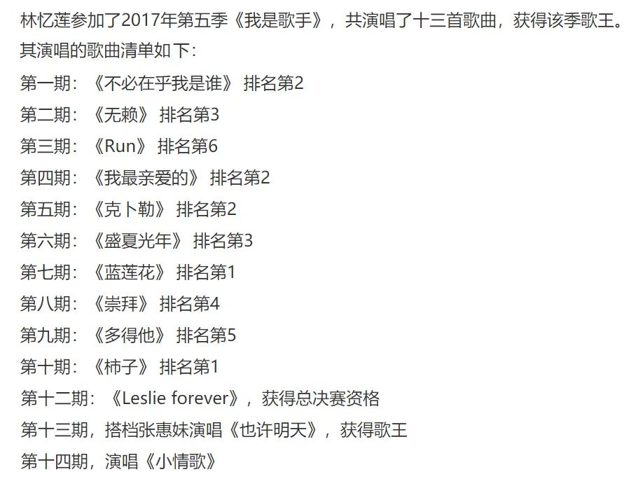 参加2017年第五季《我是歌手》,她基本没唱经典老歌。