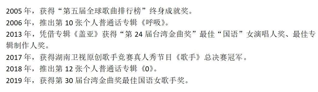 她颠覆了之前“成熟都市女人”“情歌女神”的标签,不再“爱上一个不回家的人”,也不再“为你我受冷风吹”,用冰冷、压抑的摇滚曲风让人眼前一亮。