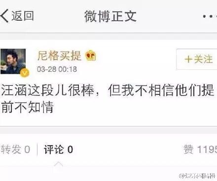 各地方台、甚至包括央视在内,因为收视率,基本都是竞争关系。昨晚湖南卫视我是歌手比赛中孙楠临时退赛惹怒众人,主持人汪涵救场被大伙赞扬,甚至连友台的华少也发微博说要向汪涵哥学习。不料央视的尼格买提质疑汪涵提前知情