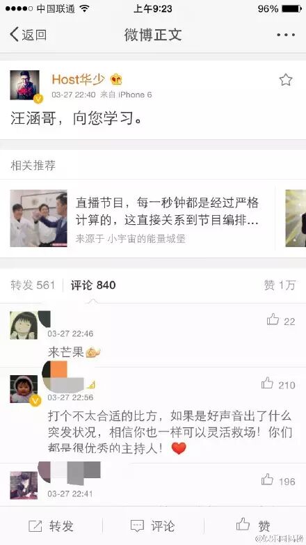 还有网友这么解读汪涵的那段救场词↓