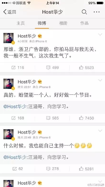 而华少今早也表示昨夜的微博是浙江卫视广告部的同事冒名发布。