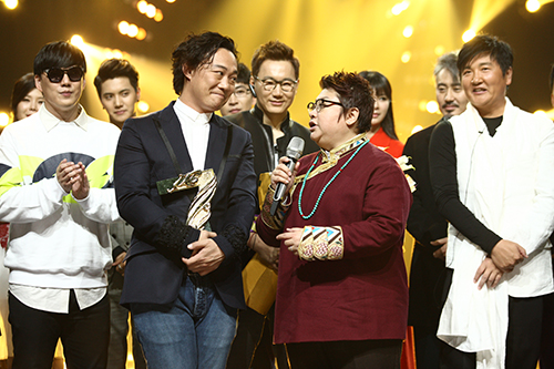然而,一旁的韩红并没表现出喜悦,神情反而更加尴尬起来。对于手中的奖杯,韩红开始努力表现出淡定和不在乎,“歌王?每个人都有能力和实力来拿歌王。今晚拿了歌王,明晚依然是职业歌手;今晚不拿的话,明晚也依然是实力歌手。”
