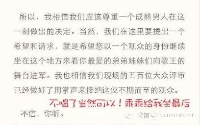 @浮夸的青春岁月:那些说孙楠退赛是节目效果的,你们想想,哪个歌手会在这个直播时候退赛去招骂?你们看其他几个歌手的表情,都他妈的惊呆了。今天只想为涵哥点赞!!!!!!!!!!