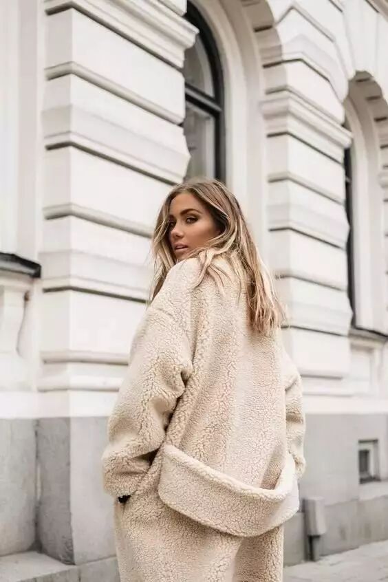泰迪外套和皮草一样,自带主角光环以及温暖感,超适合过冬,但是穿上会立马 " 臃肿 " 变成 " 熊 ",看起来很笨重。