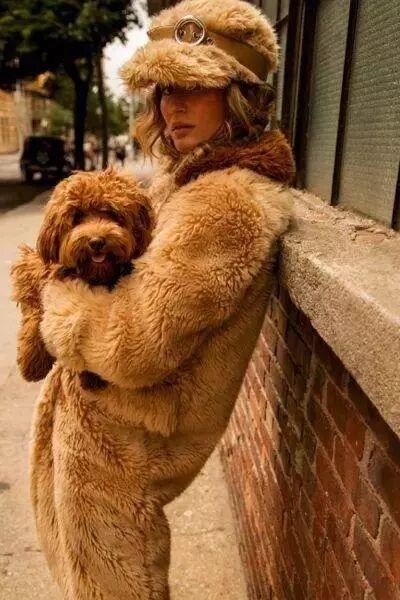 维密天使超模亚历山大安布罗休穿的是一件夹克外套款式的泰迪熊外套,这个相对有型一些,总之一看到毛茸茸的面料真心让人拒绝不了啊!