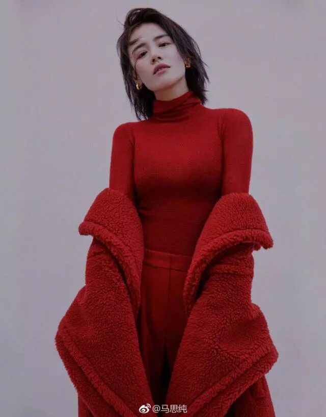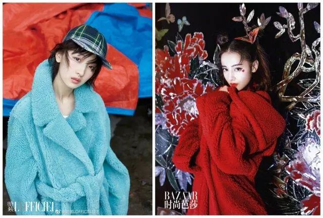 热巴,马思纯的杂志大片则是 MaxMara 的红色泰迪熊外套。▼