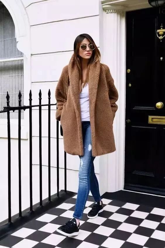 搭配泰迪熊外套最重要的就是,内搭一定要走简单路线,避免过于复杂,因为泰迪熊外套本身就是非常有特点的单品了,所以其他内搭和搭配单品,尽量都要走简单路线。