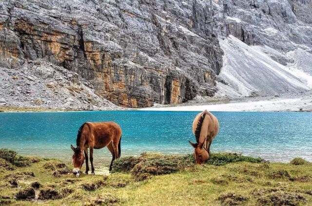 位于四川亚丁自然保护区内,又叫俄绒措。四周雪山环绕,湖水清莹碧蓝,山止成瀑,以其玲珑秀雅水色翠蓝而著名。