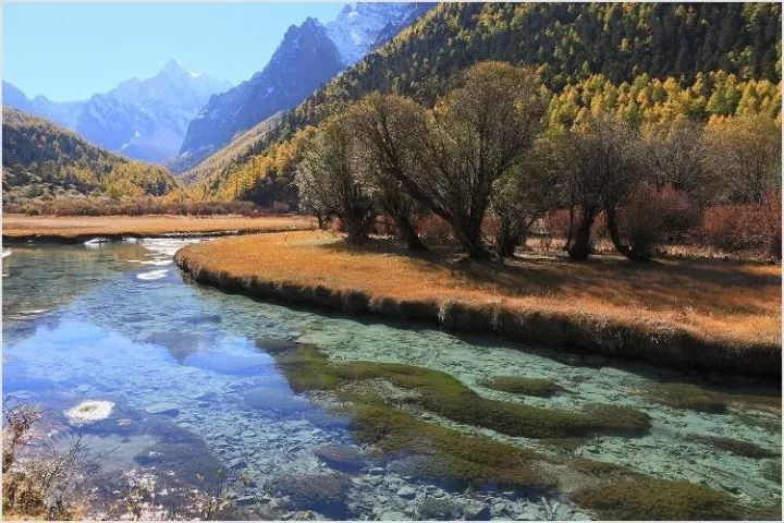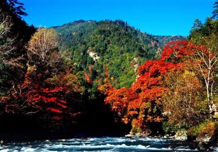 沟沟有融雪,一片枫叶林。雪山,温泉,森林,红叶,藏羌文化,构成一个红色走廊。