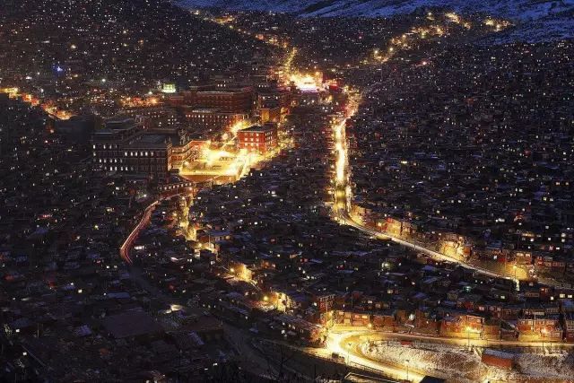 色达夜晚的景色,如夜空中眺望星河。那份夜的宁静,灌入内心,直达心底。