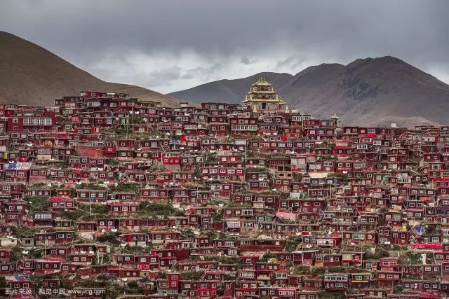 色达县位于四川甘孜藏族自治州东北部,是个藏传佛教寺庙比较集中的地方,全部为红教,当地人有「色达山河一片红」的说法。