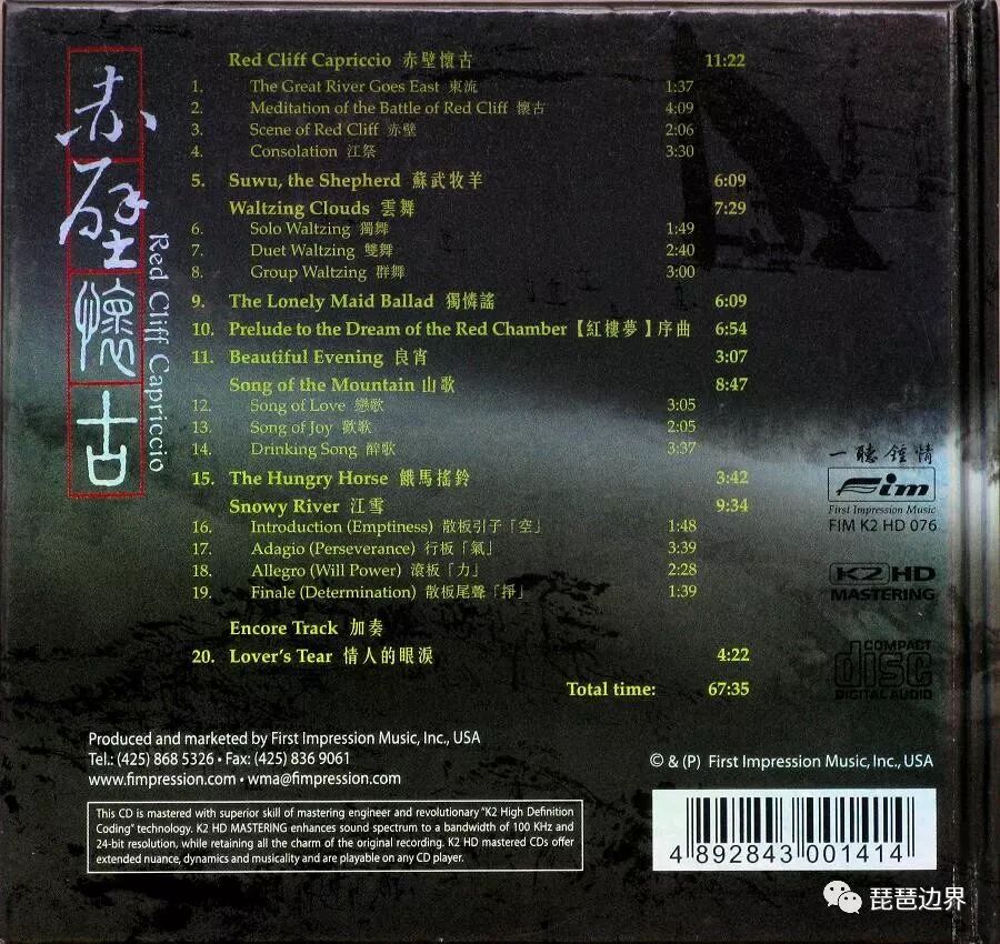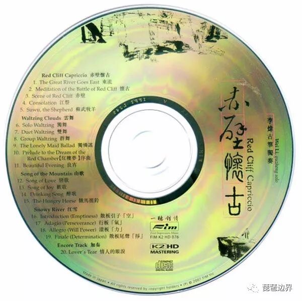片名:《赤壁怀古》 演奏: 李炜 出品: FIM介质: K2HD 发行: 2008.2
