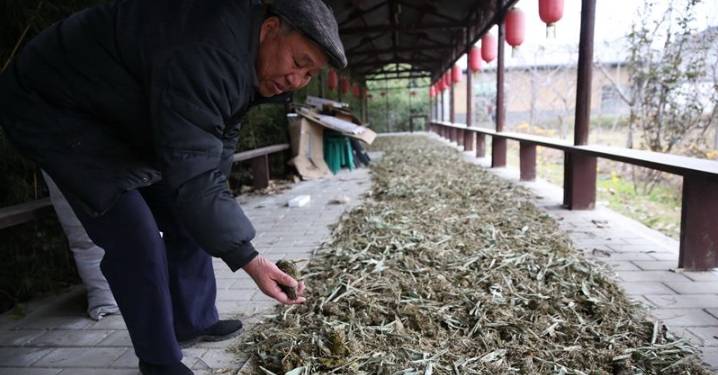 在院子的另一边有一条长廊,地上摆着一些特殊的材料——大熊猫粪便,这也是造纸原料。这些摊开在地上的熊猫粪并没有臭味。刘晓东说,由于大熊猫主食是竹子,但能被其吸收的只有百分之二十多,其余的就排出来了。这些大部分都是竹纤维,刚好可以用来造纸。和用构树皮造的纸相比,用熊猫粪造的纸有一股竹子特有的清香,他们把这种纸起名叫熊猫纸。和用构树皮造的纸相比,这种纸颜色偏黄一些。为什么要用熊猫粪造纸?这些材料来源于哪里?刘晓东说,他们和一个熊猫基地签了合同,由对方给提供材料。之所以要用熊猫粪造纸,是因为熊猫是国宝,古法造纸是国粹,他想把熊猫纸打造成为“国礼”。