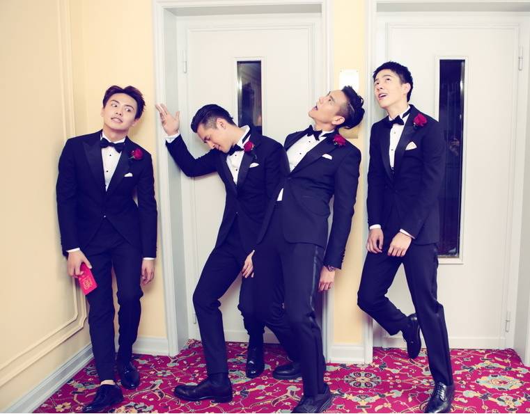 史上最帅的伴郎和伴郎团整装待发去迎亲。5个人随便走一走,大片既视感爆棚~