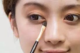 2 将下眼皮的眼角部分也涂上棕色眼影,泪袋涂上高光。