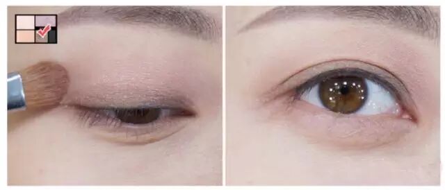 接下来,在比双眼皮线多出一些的部分刷上小图中的棕色!并对靠近眼线的地方做加深!