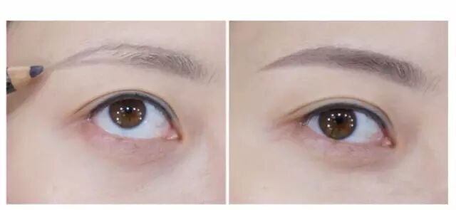 在完成基础打底妆的基础上画出眉形。水原希子的眉毛既不过长、宽度也不是很宽,是那种比较清爽的妆感!按图上的形状画出眉妆!