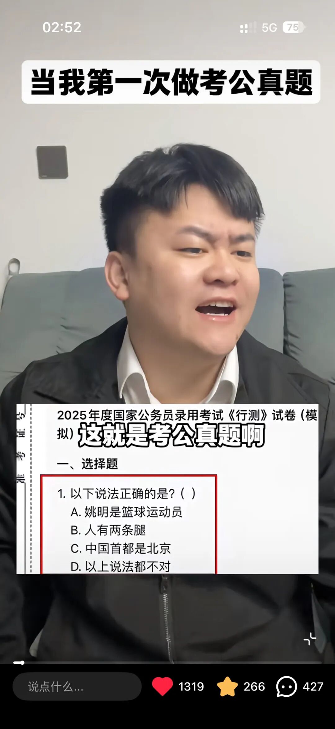虽然我暂时没有计划公务员,但我在网上冲浪的时候老是刷到这样一道考公《行测》题,还是感到挺有意思。