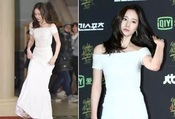 ▲ 在首尔举行的第30届韩国金唱片大赏(Golden Disc Awards),郑秀晶一袭白色一字领长裙惊艳了全场!