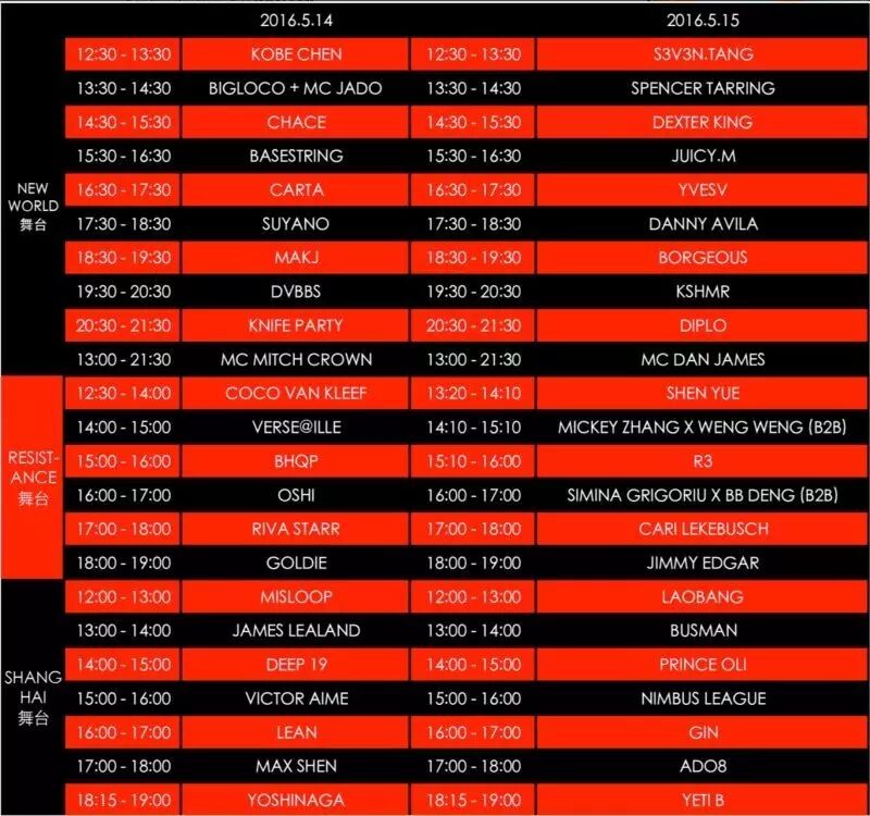 以下是MYTH电音节的时间表+出场阵容