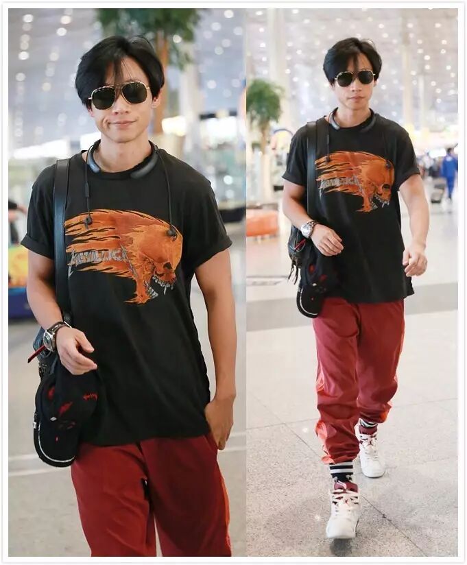 长到遮半个屁股的白T,松垮的休闲裤显腿短。小编好想帮黄轩的裤子向上提,国民初恋的衣品有待提高啊~