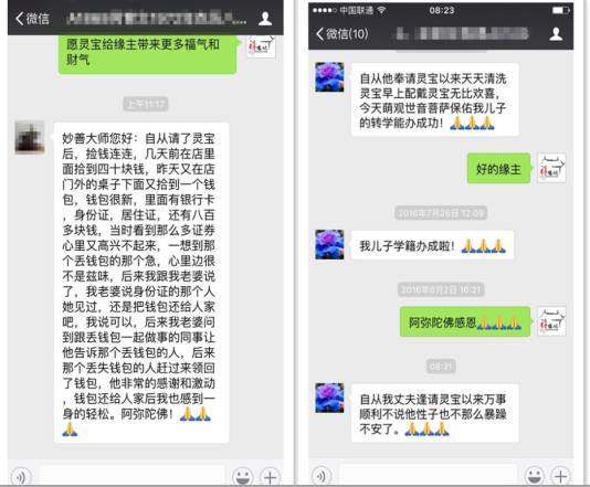 据张女士介绍,2011年跟他结的婚。可是结婚1年了,还是没有孩子,我们都很着急,父母也经常催促我们,前年因为他工作很努力被提拔成了部门经理,然后应酬就开始多起来,经常很晚回家。一天偶然发现了他的手机信息,原来他有外遇了,瞬间感觉天塌了下来。哭了好几天,朋友也跟我说了好多,吵闹也没有什么用,身体也越来越差。后来朋友介绍我说祥缘记秘法貔貅很灵的, 叫我奉请一尊福寿双全貔貅手链戴戴试试,我想也没什么不可,就找到妙善居士,并且按照妙善居士的指点诚心奉养貔貅。过了三个月大概,神迹发生了,我发现我竟然怀孕了,心里特别开心,全家人也都跟着高兴,老公也跟小三闹翻了,并且还主动向我承认错误,发誓以后会好好爱护这个家。秘法貔貅真是太灵了!真的很感谢妙善居士,希望貔貅可以保佑我和家人事事顺利,平平安安!