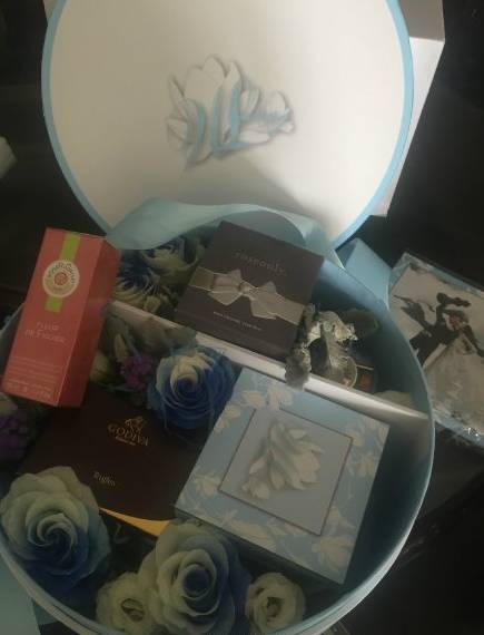 婚礼喜糖,暂不说这一大盒永生花的价格,里面还搭配了:大牌巧克力,花盒同款香氛蜡烛、某法国著名品牌香氛和香水皂