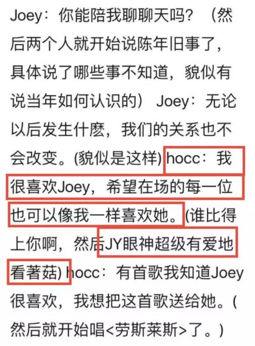 这是当时关于两人在台上的描述,何韵诗说自己很喜欢祖儿,希望在场的都能像她一样喜欢祖儿,祖儿还超级有爱的看着何韵诗,而这次的演唱会也一度被猜测是两人感情的质变,